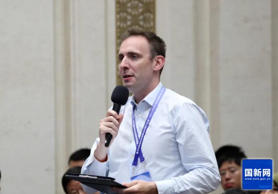 美国国际市场新闻社记者提问(赵一帆 摄)